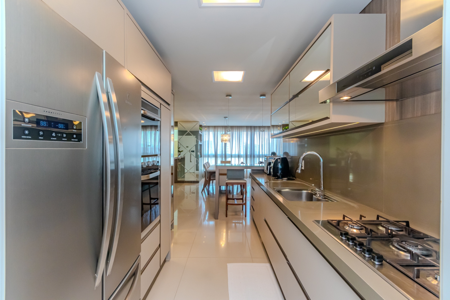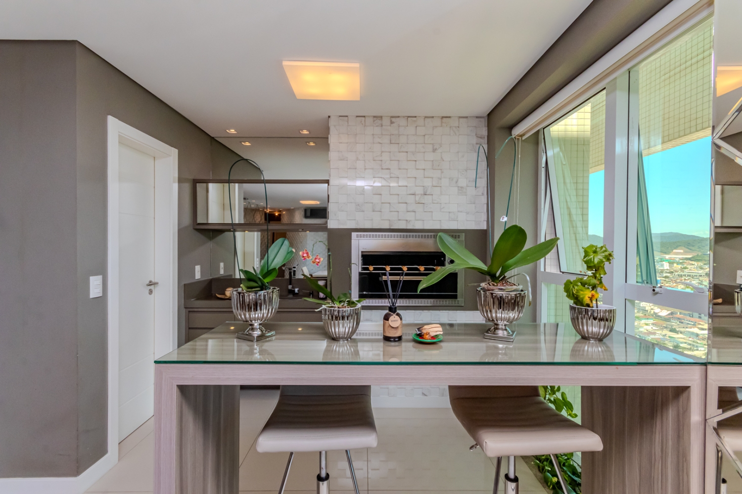 Amplo Living com área gourmet integrada.